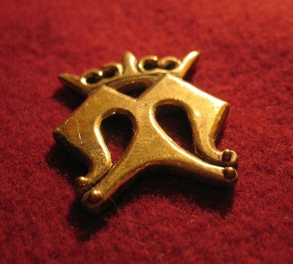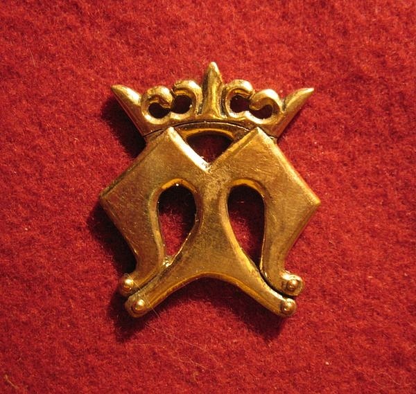 Бэдж в виде коронованной буквы М, означающей Деву Марию, Царицу Небесную. Подобные бэджи приносили с собой паломники из мест поклонения Деве Марии. Англия, конец XIV - начало XV века. По книге Brian Spencer "Pilgrim souvenirs and Secular badges".