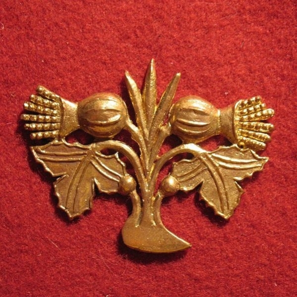 Бэдж придворных, слуг и приверженцев Екатерины Арагонской символом которой был гранат. В испанской геральдике появился в 1492 году после взятия Гранады. Oзначает плодородие по той причине, что в гранате большое количество семян. жизнь и брак (миф об Аиде и Персефоне). Испания, конец XV- начало XVI века. По книге Brian Spencer "Pilgrim souvenirs and Secular badges".