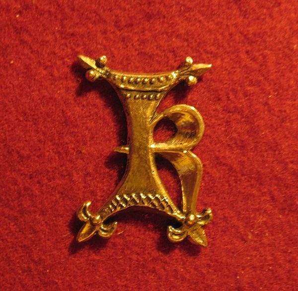 Мирской бэдж в виде буквы К, вероятно первая буква имени возлюбленного(ой). Англия, конец XIV века.