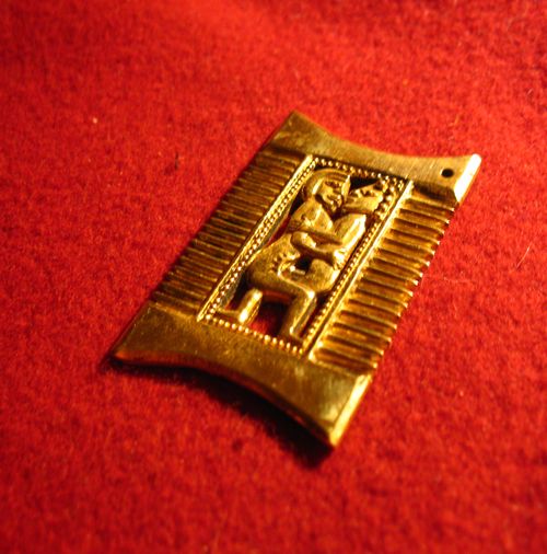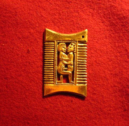 Бэдж неприличный, Нидерланды, 1325-1375гг. Изображает совокупляющуюся пару в обрамлении частого гребешка, которым обычно вычесывали вшей. Иронически намекает на то, что любителям борделей часто впоследствии приходилось вычесывать волосы подобным гребнем. По книге Jos Kolderweij "Sieraad en devotie in middeleews vlaandreen".