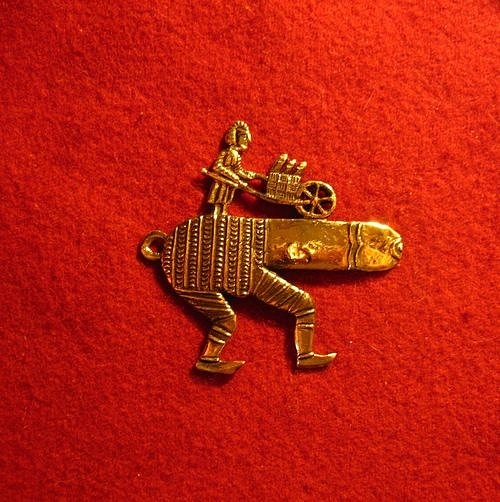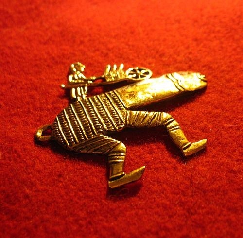 Бэдж неприличный, Нидерланды, 1400-1450гг. Изображает женщину с садовой тачкой, в которой она везет урожай из трех фаллосов. При этом идет она вместо дороги по исполинскому фаллосу на ножках. Что может намекать на склонность женшинк похоти. Неприличные бэджи могут противоречить стереотипам о средневековом ханженстве и опасением «телесной греховности». Между тем, изображения с явным сексуальным подтекстом встречаются даже в церквях. А бэджи с эротически-сатирическими сюжетами пользовались неизменной популярностью. Одна из гипотез касательно подобных сюжетов, такова: изображения фаллосов и вульв требовались для того, чтобы защищать здания от злых духов, дурного глаза и прочих опасностей. Им не воздавали культ, а видели в них амулеты, символы, способные принести удачу и благосостояние. По многим свидетельствам, в Средневековье продолжало жить древнее представление о том, что вид фаллоса отгоняет зло и привлекает удачу (отсюда, например, в суевериях происходит показывание фиги или среднего пальца как охранный жест). В XIV—XV вв. половые органы регулярно изображались на небольших металлических значках - бэджах, какие археологи сотнями находят в Нидерландах, Северной Франции и Англии. Вероятно имел метафорическое, ироничное значение. По книге Jos Kolderweij "Sieraad en devotie in middeleews vlaandreen".