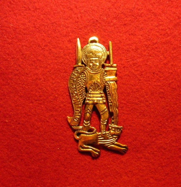 Бэдж средневековый "Св.Адриан". Адриан Никомидийский (также известный как Адриан) или Святой Адриан (умер 4 марта 306 г.) был геркулианской гвардией из римской Император Галерий Максимиан . После обращения в христианство со своей женой Натальей , Адриан был замучен в Никомидии в Турции . Адриан был главным военным святым Северной Европы на протяжении многих веков, уступая только святому Георгию , и очень почитается во Фландрии , Германии и на севере Франции. Символ паломничества в Герардсберген во Фландрии, месту поклонения данному святому. 1425-75, Нидерланды. Можно носить как подвеску.
