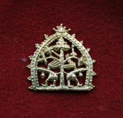 Бэдж изображает дерево с растущими на нем фаллосами. Причем, два фаллоса с бубенчиками стоят под деревом, и как будто охраняют его. Сцену обрамляет изящная заостренная арка. Мотив выращивания фаллосов в тайнвх садах и последующего сбора лакомого урожая женщинами одновременно соответствует сатирическим фаблио о власти полового желания над людской натурой, высмеиванию похоти и амулетной функции. В особенности на эту мысль наводят бубенчикм на фаллосах. Поскольку со времен античности в обиходе были амулеты, связанные с культом фаллического божества Приапа, в виде крылатых фаллосов (часто на них восседал наездник) с прикрепленными к ним колокольчиками (tintinnabuli).Которые перекочевали в Средневековье. Одна из гипотез касательно подобных сюжетов, такова: изображения фаллосов и вульв требовались для того, чтобы защищать здания от злых духов, дурного глаза и прочих опасностей. Им не воздавали культ, а видели в них амулеты, символы, способные принести удачу и благосостояние. По многим свидетельствам, в Средневековье продолжало жить древнее представление о том, что вид фаллоса отгоняет зло и привлекает удачу (отсюда, например, в суевериях происходит показывание фиги или среднего пальца как охранный жест). В XIV—XV вв. половые органы регулярно изображались на небольших металлических значках - бэджах, какие археологи сотнями находят в Нидерландах, Северной Франции и Англии. Нидерланды, 1400-1450гг. По книге Jos Kolderweij "Sieraad en devotie in middeleews vlaandreen".