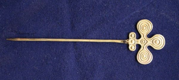 Булавка большая финно-угорская с фигурной головкой в виде креста украшенном концентрическими кругами. 9-10 век.