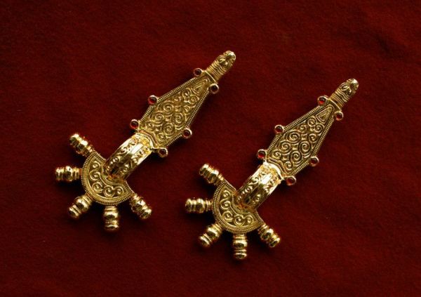 Фибула остготов из Музея Истории Искусств, города Вены. 5-7 вв, высота 12 см, вставки стекло. На третьем фото вариант с позолотой.