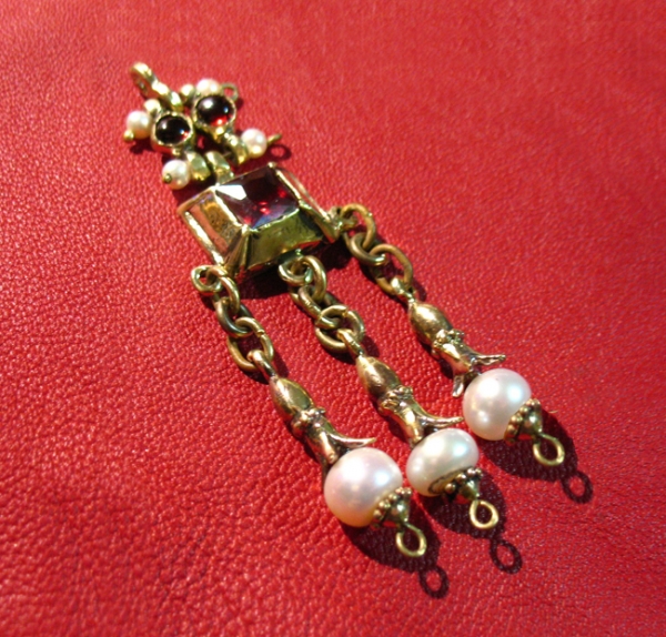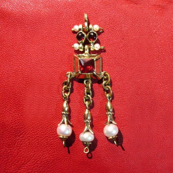 Брошь-подвеска на головной убор с камнями и жемчужинами, Бургундия, 2я половина 15го века.