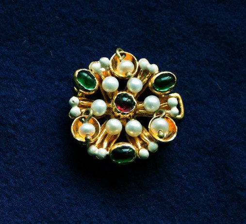Брошь ожерелья из Кливленда. Поздний 14 - начале 15 века,зготовлены предположительно в Париже, Франция. Латунь, позолота, жемчуг. стеклянные камни, холодная эмаль.Пришиваются на одежду или головные уборы.