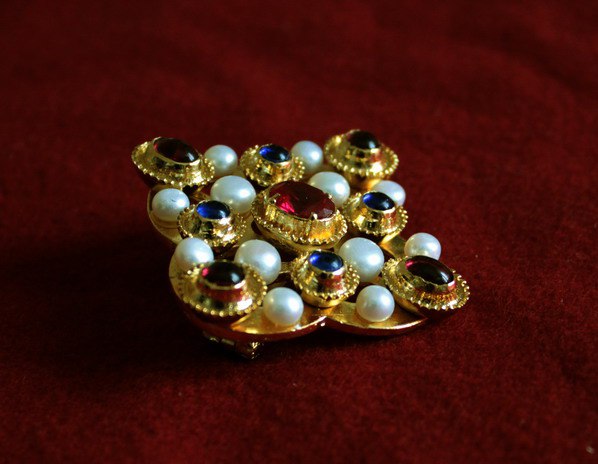 Брошь по мотивам экспоната из Кольмаолвского клада, первая половина 14 века. Хранится в музее Средневековья Клюни.