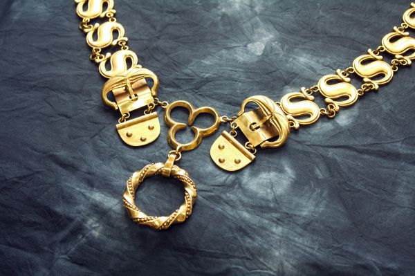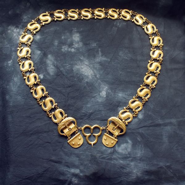 Эта рыцарская цепь в XIV-XV веке была знаком высокой чести и статуса рыцарей Ланкастеров. Считается, что буква S означает "Sovereignly". Также были знаками лояльности для сторонников Джона Гонтского, герцога Ланкастерского (1340- 99), его сына Генриха, который стал королем Генрихом IV в 1399 году, и других королей династии Ланкастеров Генриха V и Генриха VI. Тем, кого король желал почтить, были вручены рыцарские цепи разной степени ценности.
