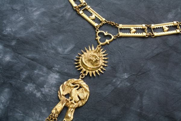 Орденская цепь немецкого духовного рыцарского ордена князей и знати конца XV века, которым правил дом Гогенцоллернов - Ордена Лебедя. Каждое из тринадцати звеньев цепи изображало сердце, зажатое в средневековом пыточном орудии — двух противопоставленных пил (так называемая бремза). Цепь с изображением сердца символизировала истинное раскаяние, исповедь, искупление и наказание. В рамках устава Ордена, лебедь означал чистоту сердца, и в то же время она напоминал о смерти. Также, согласно Уставу 1484 г. непокоренный лебедь являлся символом свободной птицы.Также это напоминало о том, что основатели Ордена управляли им как свободные и благородные люди. Сам орден основан 29 сентября 1440 года курфюрстом Фридрихом II Бранденбургским. Цепь состоит из медальона Богоматери, кулона-лебедя, разделителя и 15 звеньев. Высота около 7,5 см, длина цепи около 1 метра.