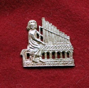 Относится к светским значкам, которые могли дарить друг другу влюбленные. На нем принаряженный юноша исполняет серенаду на портативном органчике (был распространен в Средневековье) серенаду под окном своей любимой. Англия, Лондон, XIV- XV в.