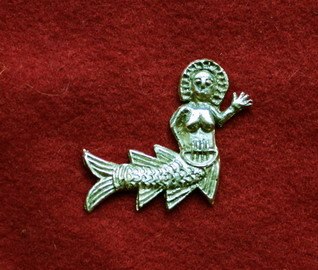 Изображает сирену с гребнем в руке. Символизирует искушение и напоминает о необходимости его избегать. С XII века была известна теория, что Змей искусил Еву, представ перед женщиной в виде существа с лицом, очень похожим на ее собственное. Сирены точно так же обольщают и завлекают путников дьявольскими чарами. Нидерланды, 1375-1425. По книге Jos Kolderweij "Sieraad en devotie in middeleews vlaandreen".