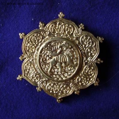 Обоймица разделительная-диск со сценой охоты от поясного набора, найденном в кургане 6 у станицы Белореченской на Северном Кавказе в 1896 г.14- рубеж 15 в. Золотая Орда, Крым или Малая Азия.