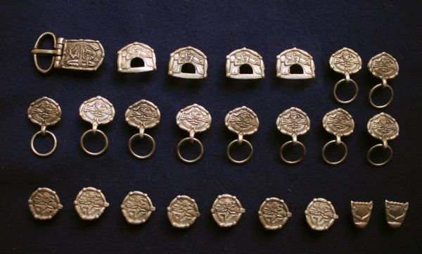 Ременной набор из могильника у с. Субботцы, Кировоградской области (бассейн реки Ингул). Мадьяры 9-10 век. Ременной набор состоит из 24 элементов.