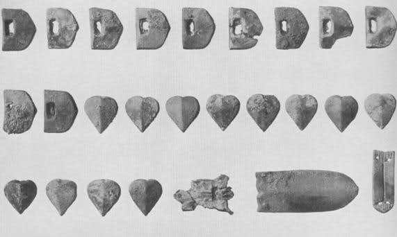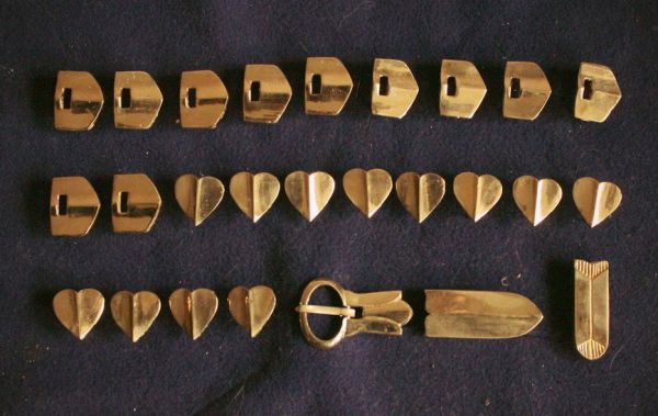 Ременной набор. Бирка, погр. 913, Швеция 10 век. Пояс вероятно имеет тюркское происхождение. Ременной набор состоит из 26 элементов.