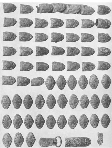 Ременной набор. Бирка, погр. 1074, Швеция 10 век. Пояс вероятно имеет венгеркское происхождение. Ременной набор состоит из 53 элементов.