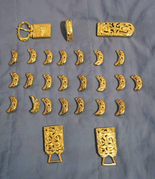 Ременной набор из Красного Яра, Астраханская область, Золотая Орда, XIII-XIV век. Ременной набор состоит из 29 элементов.