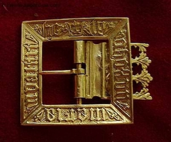 Пряжка с креплением для средней ширины пояса, сделана по аналогии к ременному наконечнику ex43. Пряжка сделана по книге "Buckles 1250-1800" Росса Уайтхеда, обьект №100. Англия 14-15 век.