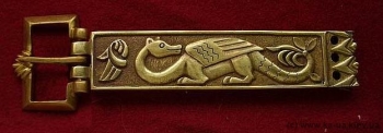 Пряжка с креплением для средней ширины пояса, сделана по книге «Waffen und Kleidung der Spatgotik», происходит из погребения в г. Тузла, королевство Босния, начало 15 век.