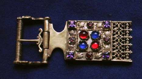 Пряжка с креплением для широкого пояса. Сделана по сохранившемуся поясу Елизаветы Люксембургской (королевы Венгрии и Чехии), Чехия начало 15 века.Для ременного наконечика ех93.