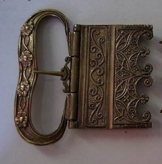 Пряжка с креплением для широкого пояса для роба. Сделана по картине голландского живописца Rogier van der Weyden. "Portrait of a Lady". c.1460, Нидерланды 15 век.Для ременного наконечика ех95.