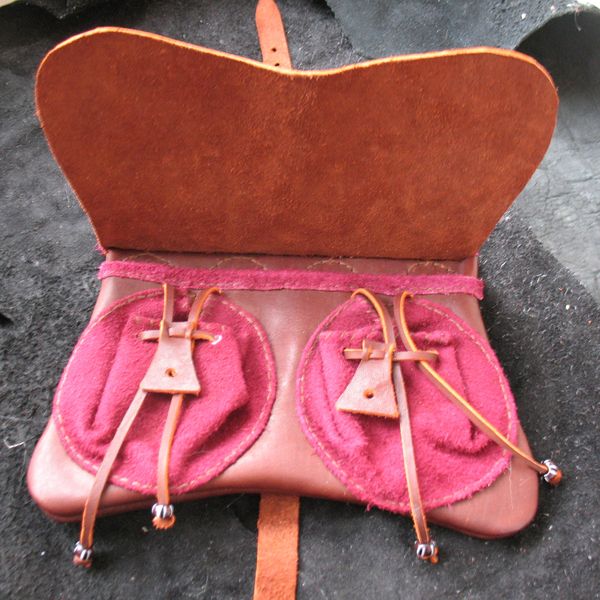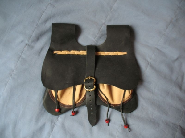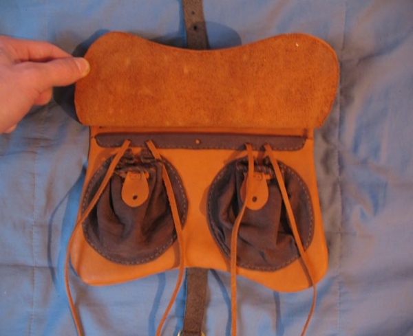Сумка средневековая с кармашками по Часослову Герцога Беррийского, месяц Октябрь. Одно отделение и 2 кармашка. Шнурки кожаные или фингерлуп.
